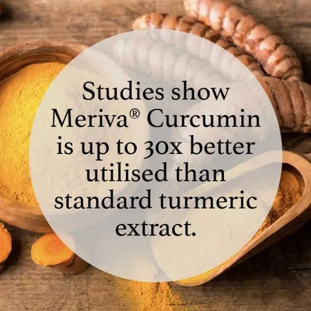 Curcumin is poorly absorbed in the body. To overcome this, Meriva® uniquely binds curcumin extract to the lipid molecule – phosphatidylcholine - creating a phytosome form, with increased absorption and bioavailability.
