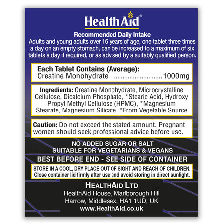 Health Aid Creatine Monohydrate 1000mg 60 Tablets