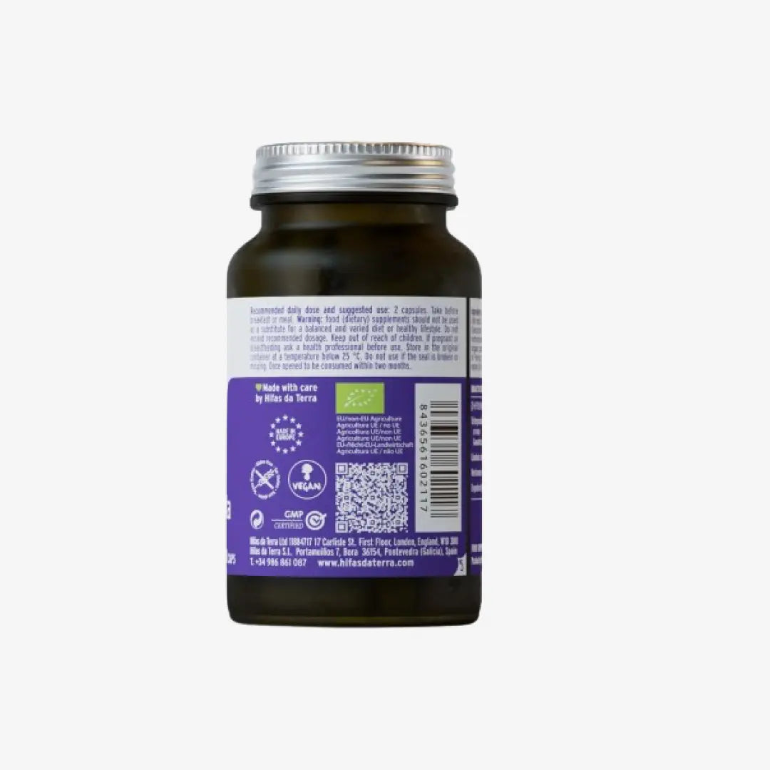Food supplement. 60 capsules (604 mg) of pure standardised extract. Each capsule contains 150 mg of organic extract of fruiting body of Hericium erinaceus extract (Herizumib®), 150 mg of organic extract of fruiting body of Ganoderma lucidum extract (Ganozumib®), vegetable capsule (coating agent: hydroxypropylmethylcellulose, purified water, and concentrated purple carrot juice), 50 mg of organic powder of fruiting body of Hericium erinaceus powder (Herimax®), 50 mg of organic powder of fruiting body of Pleurotus ostreatus and 50 mg of organic powder of fruiting body of Lentinula edodes powder, organic rice maltodextrin.