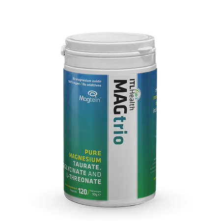 MAGtrio combines three well-researched forms of magnesium—taurate, bisglycinate, and L-threonate (Magtein®)