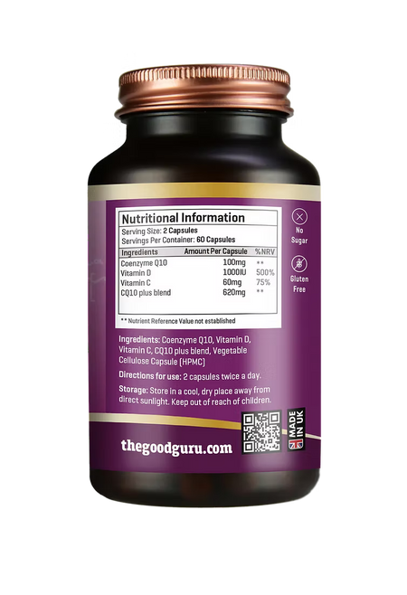 Gain optimal health and energy with The Good Guru's Co-Enzyme CoQ10. Our advanced formula features a perfect blend of co-enzyme CoQ10, Vitamin D, and Vitamin C for maximum absorption and effectiveness. Improve your overall well-being and support your immune system with this powerful supplement.